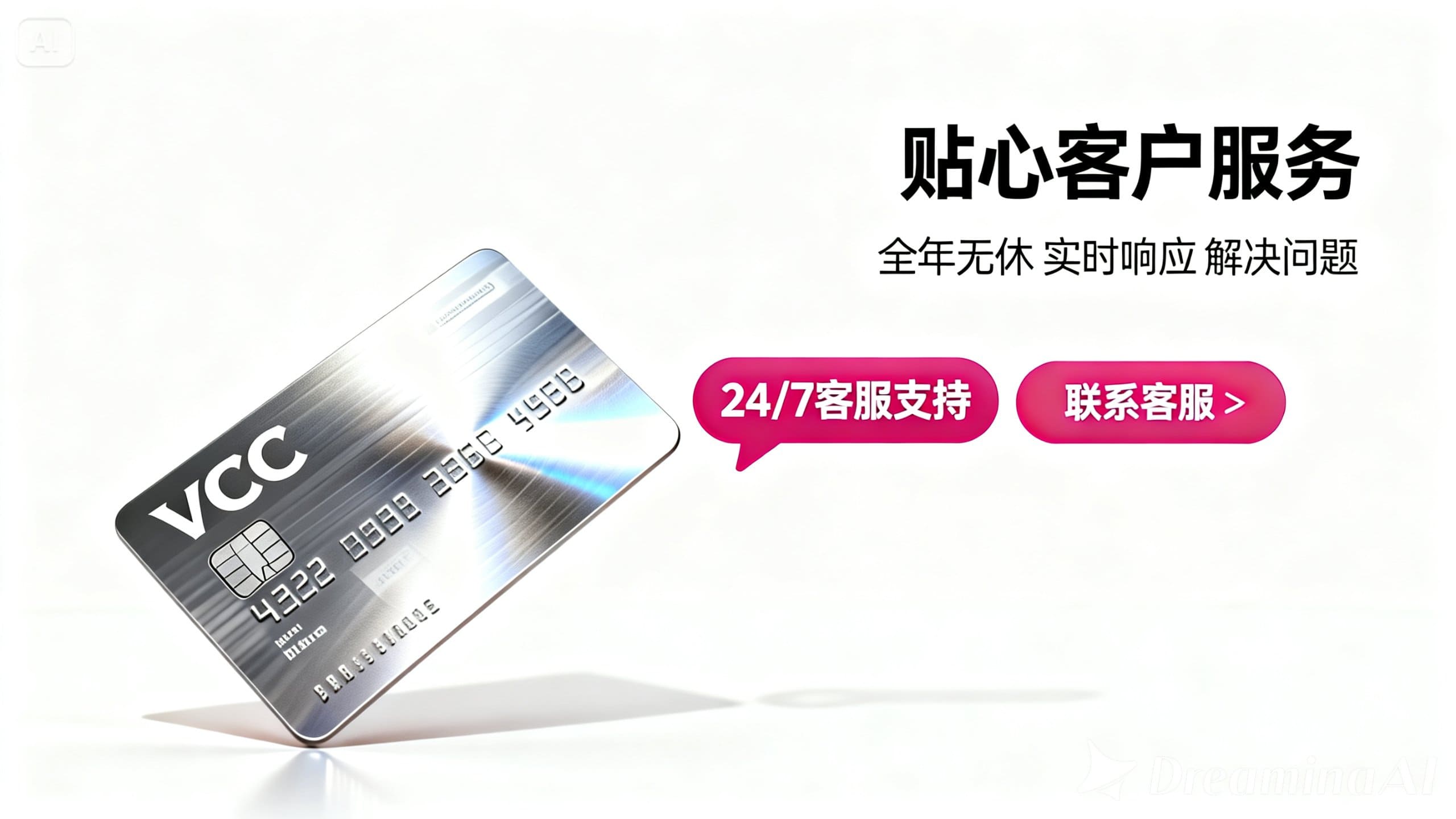 VCC是一家领先的虚拟信用卡发卡平台,与国际发卡机构合作推出的虚拟卡服务,致力于为企业和个人提供安全、高效、便捷的支付解决方案。我们专注于利用最先进的金融科技,革新传统支付方式,帮助用户在数字经济时代中获得无缝支付体验。我们致力于通过创新的金融科技,提供更安全、更高效的支付解决方案,帮助用户在数字经济时代中轻松实现支付自由。VCC将不断追求卓越,持续优化产品和服务,成为用户信赖的支付合作伙伴。更多疑难问题请直接联系 在线商务客服。